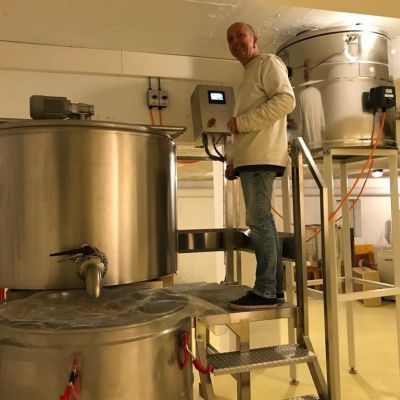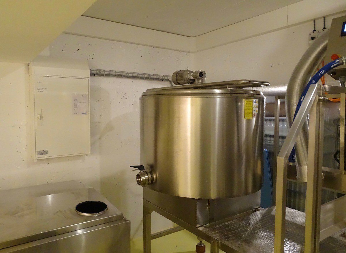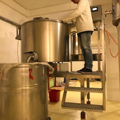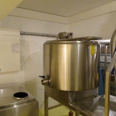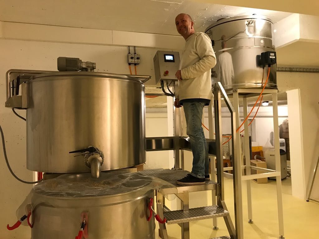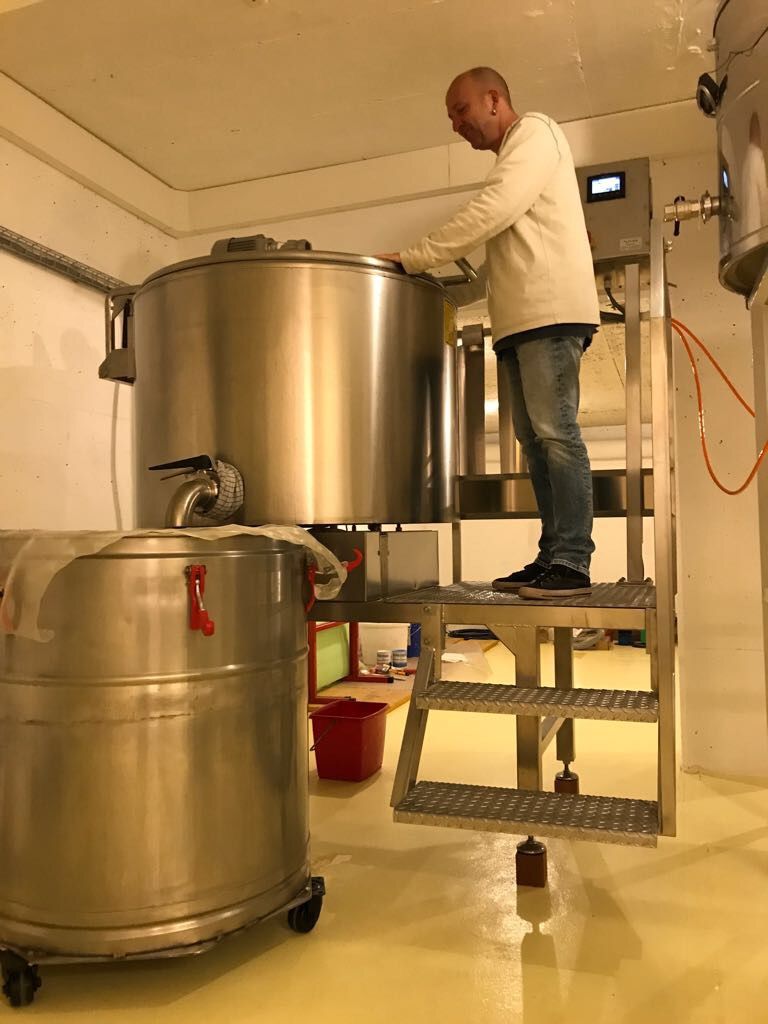 Im Produktionsraum steht unter anderem ein 500 Liter Braukessel, mit dem wir pro Sud ca. 300 Liter Bier herstellen können.