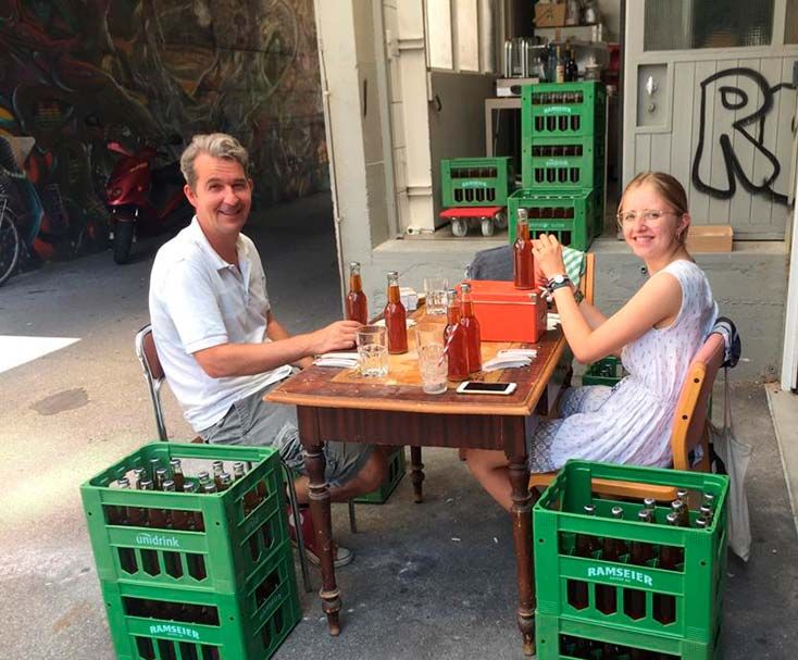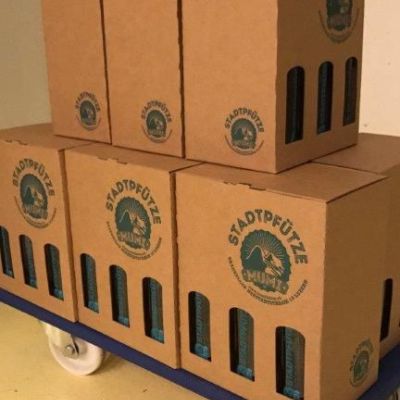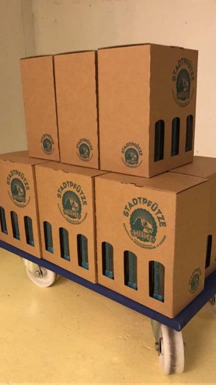 Im Lagerraum werden auf ca. 100 m2 Bierflaschen, Verpackungsmaterial und Rohstoffe auf Paletten gelagert.